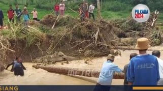 Warga Cimanggu Bangun Jembatan Darurat dari Batang Kelapa