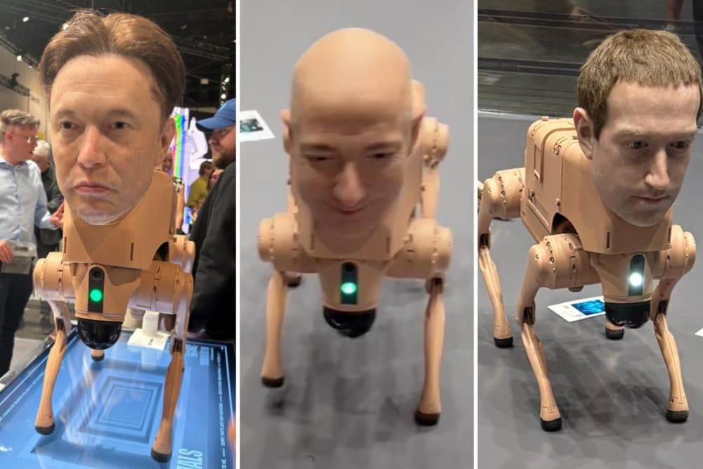 Mengambil tempat di Zero 10—bagian seni digital terbaru Art Basel Miami Beach, Beeple memamerkan deretan anjing robot yang bukan sekadar perangkat mekanik futuristik. Setiap robot dilengkapi kepala hiper-realistis yang menyerupai tokoh teknologi dunia, seperti Elon Musk, Jeff Bezos, Mark Zuckerberg, Pablo Picasso, Andy Warhol, dan Beeple sendiri.