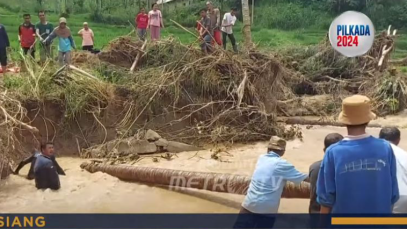 Di Kecamatan Cimanggu, Kabupaten Pandeglang, sejumlah warga mengambil inisiatif untuk membuat jembatan sementara. Jembatan ini dibuat dari batang kelapa setelah jembatan utama yang menjadi akses penghubung tiga desa di wilayah tersebut ambruk akibat dilalui kendaraan truk pengangkut kayu.